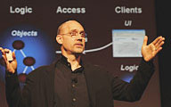 Chappell & Associates' David Chappell kept a standing-room-only crowd in rapt attention as he detailed the design patterns for a new breed of service-oriented applications (SOAs) at his VSLive! keynote on Tuesday. This fourth-generation architecture integrates Microsoft Windows Communication Framework (WCF, formerly code-named "Indigo"), SOAP-based service components, Windows Workflow Foundation (WF), BizTalk Server 2006 (BTS), and Visual Studio (VS) 2005 (see Resources). Chappell hastened to reassure software architects that "[t]hankfully, these [new service-oriented] applications are not all that different from what came before."