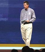 He began with a pat on the back, citing Java's market penetration and the widespread growth and momentum of the Java community. "Everyone with a biological heartbeat is now programming in Java and everything is getting connected," he said. According to Sun, there are 4 million Java programmers, and the community is growing at the rate of 30 percent a year. Java is now running on everything from smart cards to the Mars Rover.